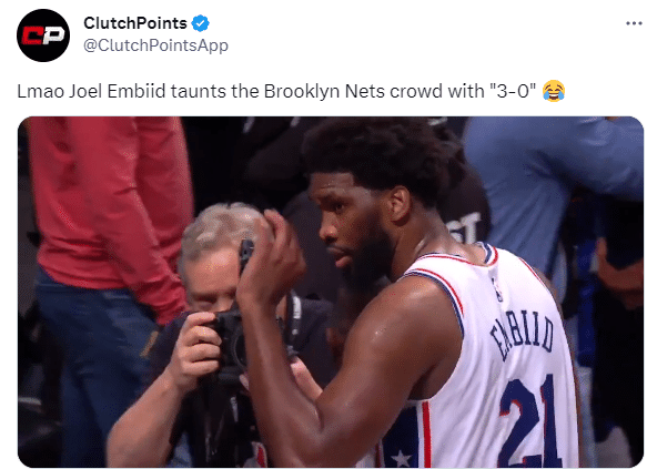 末节,恩比德一瘸一拐继续带队,马克西在进攻端表现出色,恩比德盖帽准绝杀,奥尼尔边线发球致命失误,最终76人拒绝逆转,拿下G3夺得首轮赛点,赛后恩比德和马克西开心庆祝,恩比德冲着篮网球迷比出3-0的手势;76人有望4-0横扫篮网晋级东部半决赛,并且很可能在分区半决赛大战凯尔特人(目前绿军2-0老鹰)。