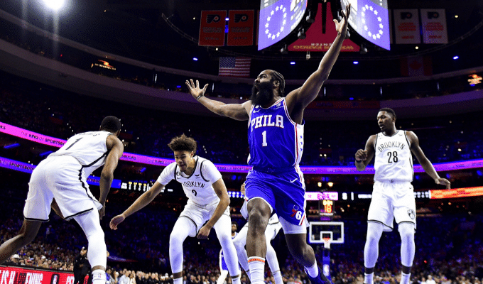 篮网在卡梅隆-约翰逊的带领下紧咬比分差距,他首节轰下10分,进攻效率很高,芬尼-史密斯也表现不俗。被更加看衰的篮网并不放弃,打出了自己的特点,进攻速度很快,一度让恩比德折返跑,首节双方战成25平。