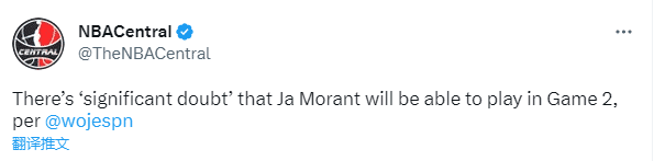 目前湖人全员健康,不过灰熊G1输球还遭重创,莫兰特的手腕受伤,赛后莫兰特透露他的伤势不轻;今日名记woj表示莫兰特能否出战G2存在很大的疑问。