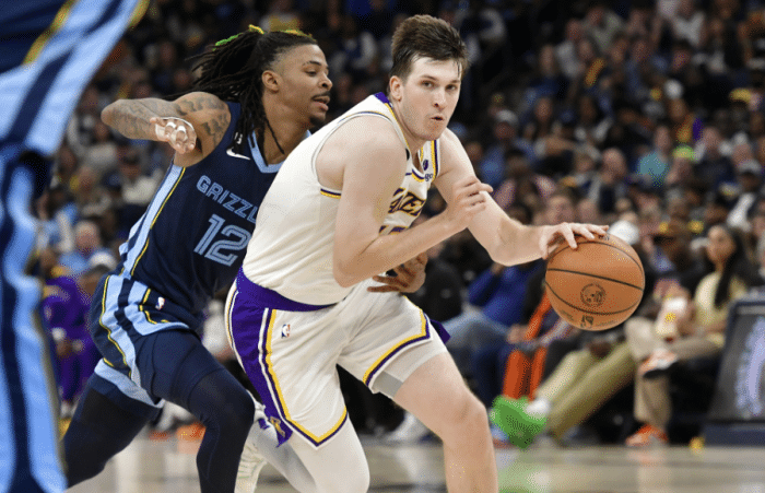 面对西部第二的灰熊,湖人第一节略占优势,第二节27-38被灰熊扭转局面,期间浓眉不幸撞伤手臂,离场返回更衣室,所幸伤势无大碍,下半场继续出战;湖人第三节37-25净胜12分,除了詹眉的表现之外,八村垒单节命中4记三分独砍12分立功;末节湖人被反超后10-0稳住局面,关键时刻里夫斯连得9分,浓眉连续暴扣终结比赛,最终湖人拿下季后赛开门红。