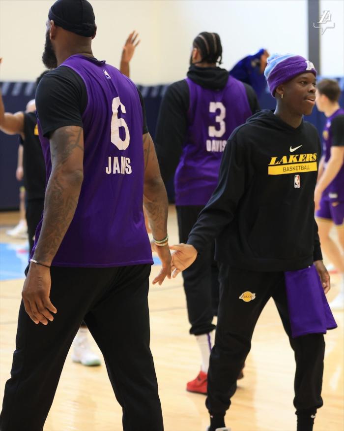 在今天的训练中,浓眉和施罗德两人打配合,湖人记者晒出施罗德控球,浓眉要球后背打后仰得分和干拔中投;湖人官方晒出浓眉加练三分球,外线三连中手感不错。