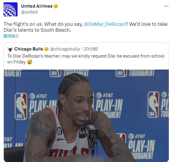 美联航官推则表示:机票我们包了,德罗赞你怎么说?我们想要她把天赋带到南海岸。