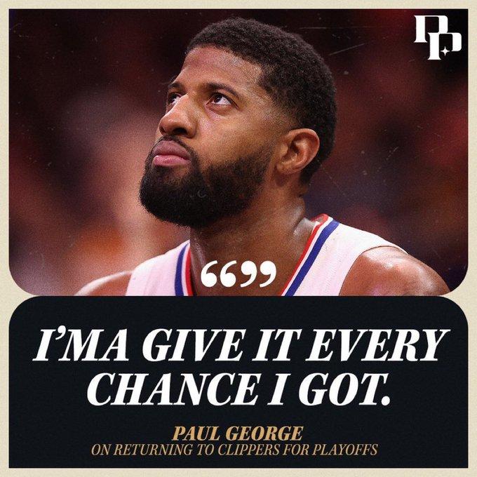乔治有望在季后赛首轮复出,自从3月22日扭伤膝盖后,乔治因伤缺席至今,已经连续缺席了9场比赛,本赛季在乔治缺席的情况下,快船12胜14负;不过乔治伤停后,小卡和威少带队以西部第五的身份杀进季后赛,首轮大战拥有杜兰特、布克、艾顿和保罗的太阳。
