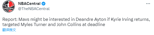 若欧文留守达拉斯,独行侠将会升级内线,艾顿、迈尔斯-特纳和科林斯都是他们潜在的引援目标。
