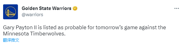 24直播网讯03月26日,勇士官方宣布,明日勇士主场对阵森林狼,小佩顿的出战状态升级为大概率出战,75%可能性复出,名记则确认小佩顿明天复出,会受到限时令,这将是他重返勇士后首秀;名记报道勇士不会向联盟上诉开拓者隐瞒小佩顿伤情。