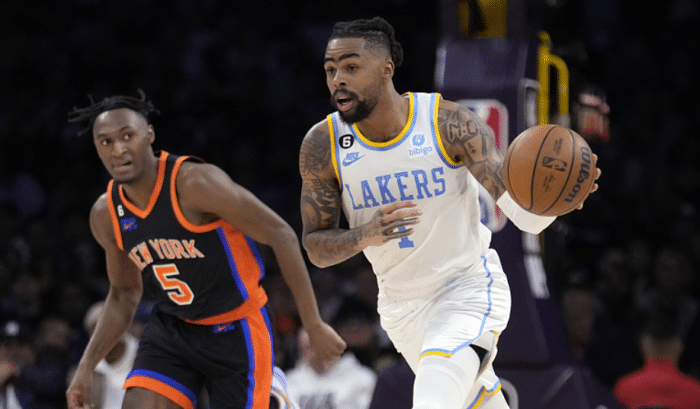 拉塞尔延续上一场的火热状态,面对尼克斯,第一节开场便背打翻身跳投命中,之后接连轰进三记三分点燃球馆,暂停回来,拉塞尔在反击中飞身上篮,湖人18-11领先7分,拉塞尔6投5中一人贡献13分;拉塞尔下场后,兰德尔带队反扑,单节独砍18分带领尼克斯反超比分。