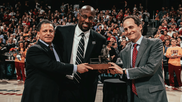 2008-09赛季,詹姆斯曾在骑士与迈克-布朗共事,骑士在那个赛取得66胜的联盟最佳战绩。那一年,詹姆斯拿到了常规赛MVP,而布朗当选年度最佳主教练。现在看来,布朗有望再次得到这一奖项。