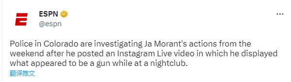 24直播网讯03月07日,灰熊球星莫兰特夜店持枪事件最新进展,根据美媒ESPN报道,科罗拉多当地警方已着手调查此事,名记shams表示莫兰特恐遭联盟更严厉的处罚。
