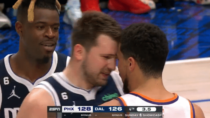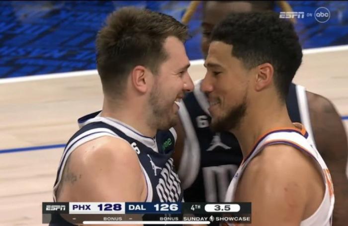 东契奇和布克互喷笑场:名记揭秘冲突原因 杜兰特劝架也跟着笑了