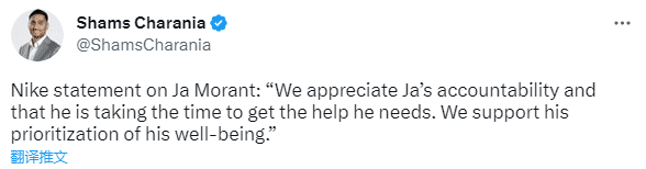 24直播网讯03月05日灰熊球星贾-莫兰特夜店持枪事件引热议,NBA联盟介入调查,灰熊官方宣布莫兰特离开球队,至少缺席接下来的两场比赛;莫兰特已经公开道歉,之后耐克对此事发表官方声明:我们(耐克)感谢贾-莫兰特的责任心,他需要花费一些时间来寻求帮助。我们支持他优先考虑如何把自己的问题解决好。
