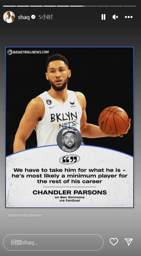 对于NBA名宿奥尼尔转发帕森斯的言论,换言之,奥尼尔也认为以后西蒙斯只能拿底薪了。