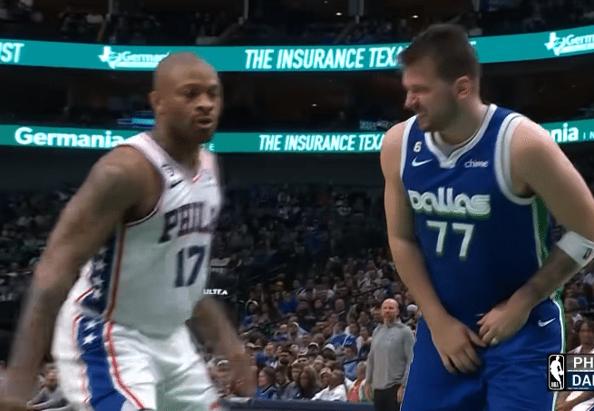 下半场,欧文第三节急停中投,持球突破高难度拉杆得分,东欧连线欧文轰进空位三分,之后欧文连续助攻布洛克连中三分,欧文突破哈登和恩比德的包夹,杀到篮下在空中对抗马克西后把球打进,欧神仙这一球太潇洒了,独行侠20-4一波流拉开分差;欧文下场,东契奇续上火力,迎着大帝轰进三分,假动作点飞恩比德,后者无奈凶狠犯规,卢卡继续3分迎射恩比德,三节打完独行侠领先19分,独行侠第三节命中9记三分创队史单节纪录。
