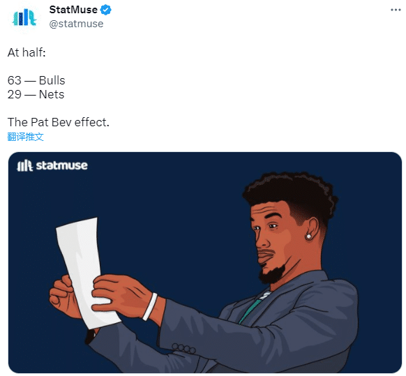 第二节,公牛继续把篮网按在地板上摩擦,单节30-11又赢19分,期间贝弗利迎着乔-哈里斯轰进三分,半场打完,公牛足足领先篮网34分,美媒热议这是贝弗利效应;贝弗利多次点燃球馆,为家乡带来激情和欢快。