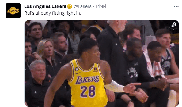 湖人官方晒出八村垒湖人生涯首秀的集锦视频,配文写道:八村垒已经适应了。八村垒湖人首秀,替补出战22分钟,7投4中拿到12分6篮板1助攻1抢断,在场正负值+17全场最高。