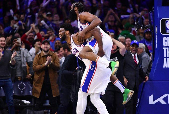 76人赢球赛后,哈登晒出骑恩比德庆祝的画面,发推写道:你知道我会像推拿大师一样在你背后挺你;这一幕发生在末节关键时刻,恩比德轰进制胜三分后,哈登激动地跳上恩比德的背庆祝,也就有了这很有趣的一幕。