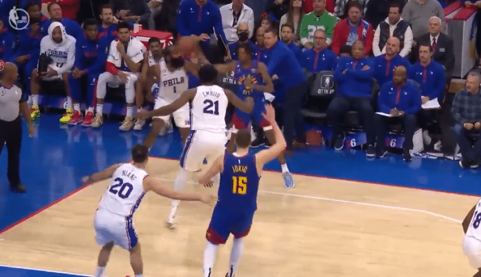 24直播网01月29日讯 ,NBA常规赛76人主场126-119逆转掘金,恩比德面对约基奇轰下47分18篮板5助攻,哈登则是拿到17分13助攻串联队友,第三节哈登突然上场“脑袋被砸”抢断,大胡子化身老六偷鸡真相曝光:上场凑人数却不慎被球砸到脑袋。