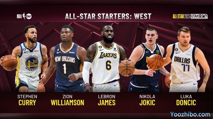 西部全明星首发:詹姆斯(队长)、东契奇、库里、约基奇、锡安。