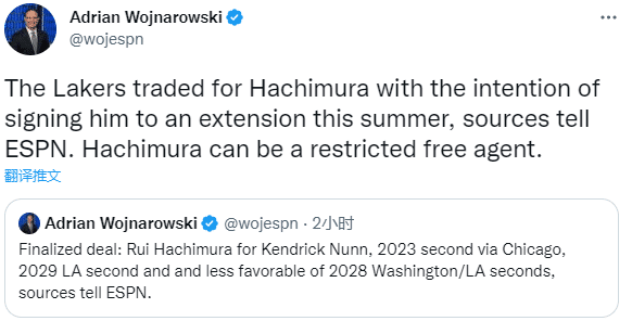 名记Jake Fischer揭秘交易内幕,湖人向奇才报价纳恩和两个次轮,奇才坚持一个首轮,今天湖人加价给出了第三个次轮,最终双方成交。