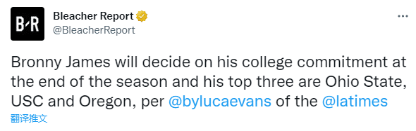 据美媒《露天看台》报道,布朗尼将在本赛季结束时决定他的大学承诺,他最想加盟的三所大学分别是俄亥俄州大、南加州大学和俄勒冈州大。