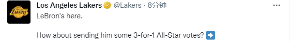24直播网01月07日讯 ,湖人对阵老鹰赛前,官推晒出詹姆斯提前4小时入场的晒照,并且在全明星三倍计票日为老詹拉票:勒布朗在这儿,在三倍计票日为他投票怎么样?不过ESPN宣布将公布詹姆斯的独家专访的声明引热议,球迷已经争起来了。