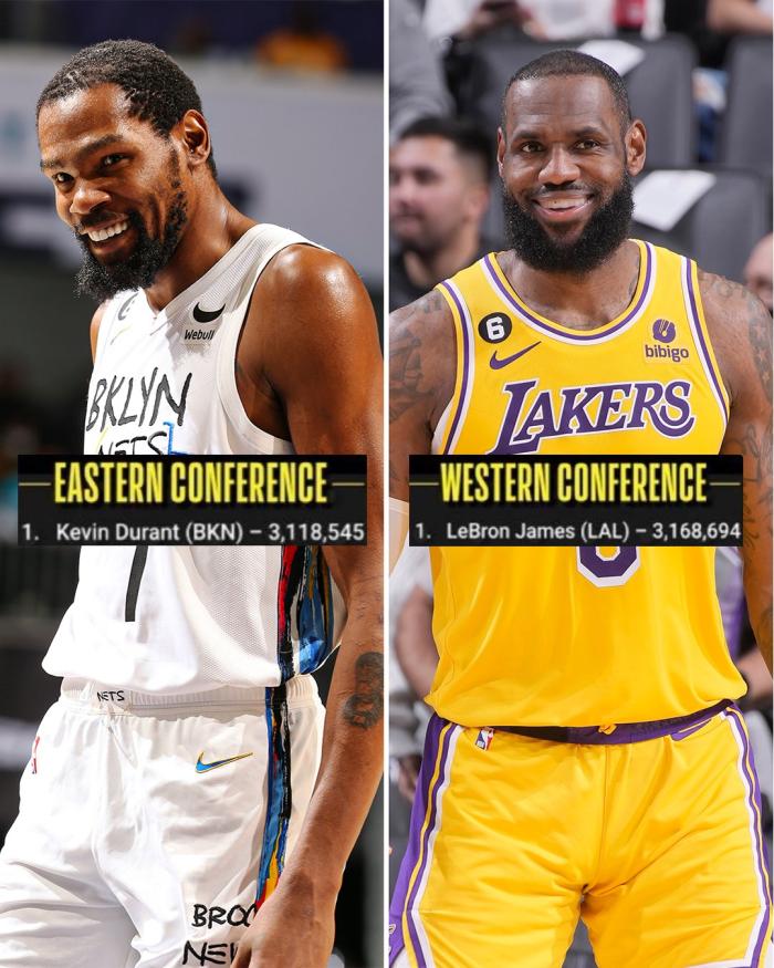 24直播网01月06日讯 ,NBA官方公布2023年全明星第一轮球迷投票结果,詹姆斯3168694票力压杜兰特3118545票成为第一阶段票王,杜兰特领跑东部;湖人和勇士两队累计10名球员冲进前场和后场前十,篮网队3人上榜。