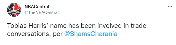 76人已经开始和联盟各队商讨交易试图得到今年休赛期刚签约的球员(12月15日后可被交易);随着谈话的深入,76人已经将前锋托拜亚斯-哈里斯摆上了货架。