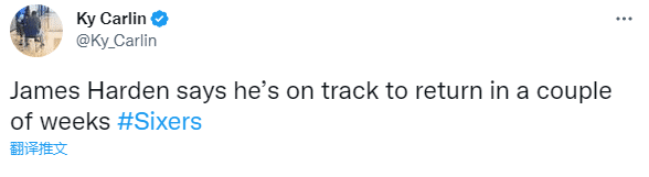 76人随队记者Ky Carlin报道,哈登已经脱掉保护靴,并参加了今日的投篮训练,但暂时还未参与对抗训练。
