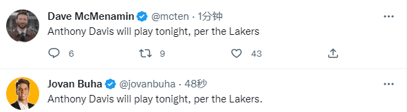 由于遭遇非新冠疾病,被列为出战成疑,浓眉缺席了当地时间上午的训练,不过浓眉参加了赛前热身训练,这是他带病出战的好兆头,最终湖人宣布浓眉带病出战国王。