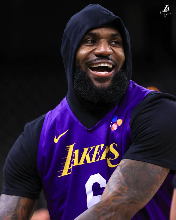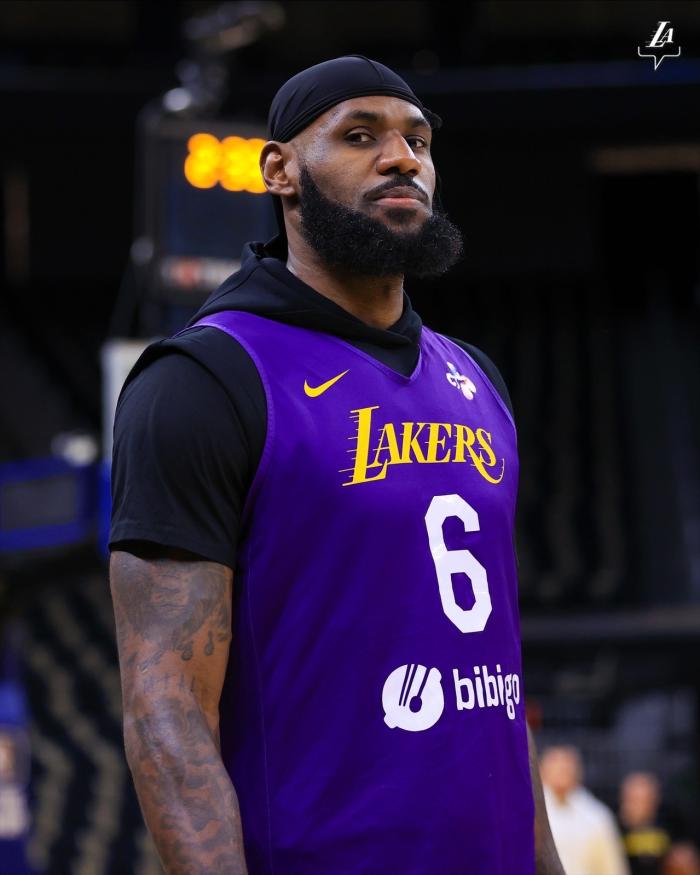 24直播网10月18日,NBA2022-23赛季来了,湖人客场对阵卫冕冠军勇士,赛前湖人官方晒出詹姆斯的热身照,配文写道:第20个赛季;湖人官方还晒出詹姆斯的帅气入场照,身穿一套白色西装、佩戴墨镜亮相。