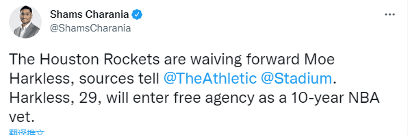 据报道,火箭将裁掉前锋哈克莱斯和马勒东,他们都将成为自由球员,预计联盟会有多支球队争夺他们。