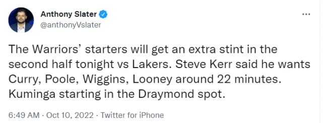 谈到安排库明加首发,科尔说道:“这场比赛对他的意义变得更大了,看到他能与其他几位首发一起出战,我很高兴。”在此前的两场季前赛中,库明加均替补出战,场均出场25.5分钟,得到5.5分2.5篮板2助攻0.5抢断,三分命中率33.3%。