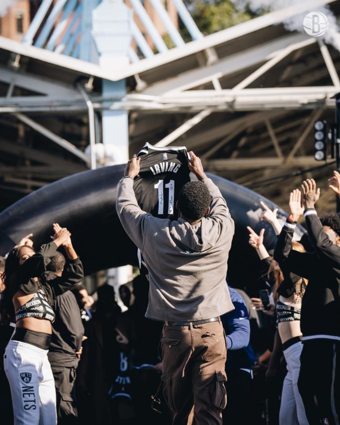 篮网官方还晒出三巨头的入场照,杜兰特和西蒙斯都举手向球迷致意,欧文则是展示他的球衣;配文写道:我们爱你,布鲁克林。