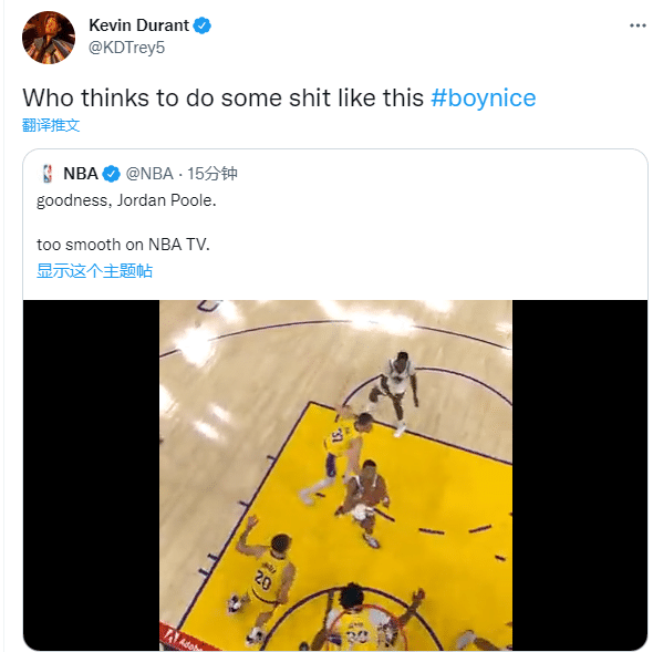 普尔第三节杀红眼,单节11投7中爆砍18分3篮板3助攻,普尔疯狂一球引热议,NBA官方转发普尔华丽进球,杜兰特第一时间发推盛赞:谁能想到这样的操作?#这孩子真不错!
