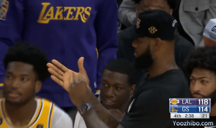 今日与勇士一战,马特-莱恩展现三分投射能力,外线9次出手命中6球,末节还剩2分40多秒,莱恩投进个人本场第6记三分,詹姆斯坐不住了,走到场边为小弟鼓掌庆祝;这一场比赛,莱恩就像是湖人队新的詹皇带刀侍卫,不过莱恩目前仅仅只是一份训练营合同,还在为一份正式合同而努力。