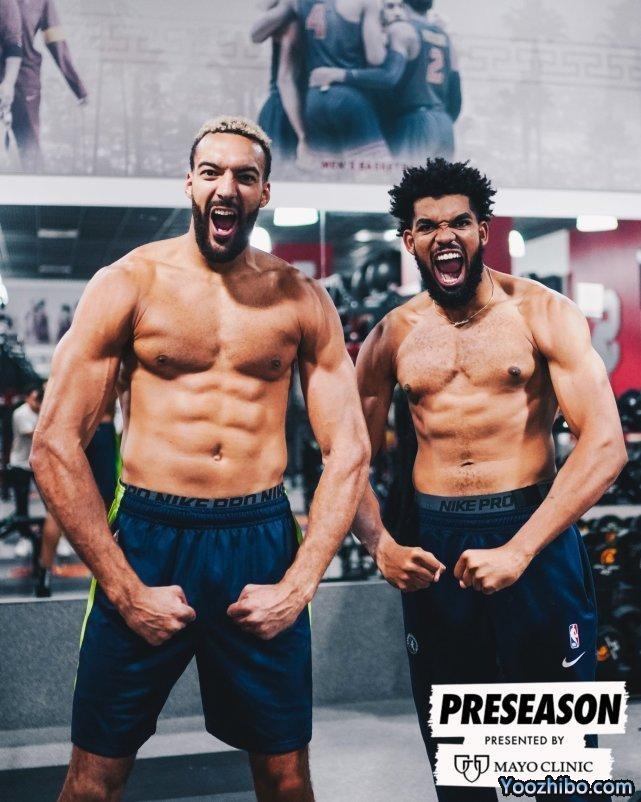 24直播网10月09日,森林狼官方晒出了唐斯和戈贝尔赤膊训练的合影,两人冲着镜头大吼,一身肌肉令人印象深刻。森林狼打造的新双塔,已经成了两位魔鬼筋肉人。