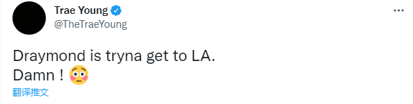 老鹰球星特雷-杨发推写道:追梦想去洛杉矶了!该死!