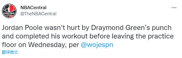 据ESPN名记沃纳罗斯基报道,球队官员正在审查这一事件,普尔并没有因为格林的这一拳受伤,他在离开球馆前完成了今天的训练。