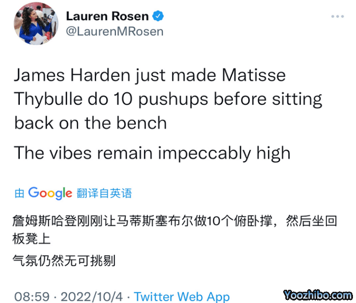 哈登在场边指挥,此役首发出战的塞布尔表现不佳,只有尴尬的4中1,其中三分球3中1,塞布尔对于自己的表现也感到不满意,有点沮丧。结果哈登让塞布尔做了10个俯卧撑,然后再坐下。