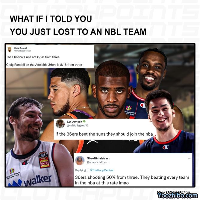 太阳不敌NBL球队引热议,有球迷表示阿德莱德36人队该加入NBA;杜兰特躺枪,美记者Matt Smith发推写道:杜兰特应该会请求被交易到阿德莱德36人。(今夏杜兰特曾申请被交易到太阳,最终杜兰特离队失败,继续留守篮网)
