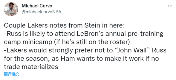 目前来看,威少离队的可能性越来越小,名记Marc Stein还表示湖人强烈反对像火箭上赛季弃用沃尔那样送威少回家,若威少没有被交易,哈姆想要让威少在球队中发挥作用。