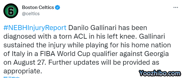 24直播网09月03日讯 ,新赛季还没开始,凯尔特人已经遭重创,新援加里纳利的伤情进一步确诊为左膝十字韧带撕裂,凯尔特人官方宣布:加里纳利被诊断出左膝 ACL 撕裂,他是在8月27日代表意大利参加与格鲁吉亚的世预赛时受伤的,我们将酌情提供进一步的伤情更新。