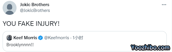 大莫里斯发推写道:布鲁克林;约基奇兄弟回应:你诈伤!