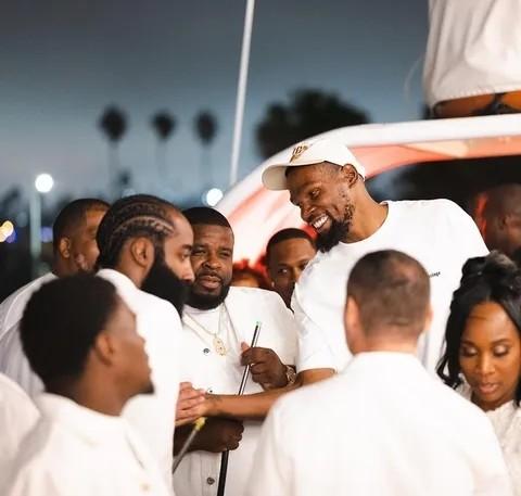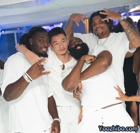 哈登穿着帅气,戴着大金链和墨镜。在好友们的簇拥下,快艇派对开得相当热闹。哈登还把蛋糕丢进海里,引起热议。不少球迷调侃哈登真是下定决心减肥,连蛋糕都不吃了。