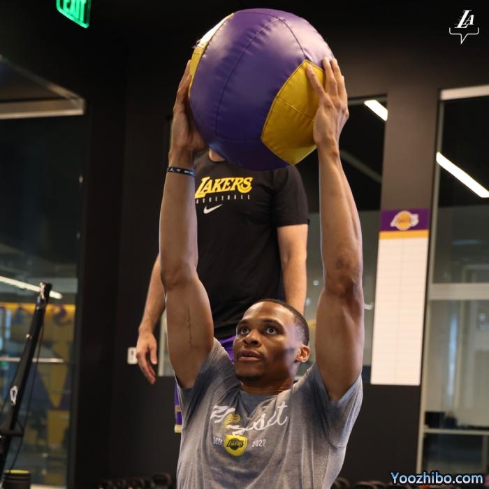 湖人官方晒出多名球员的训练照,在健身房中威少苦练核心力量,T恤已经被汗浸湿了;托马斯-布莱恩特训练时,湖人新秀克里斯蒂拿着哑铃比V抢镜。