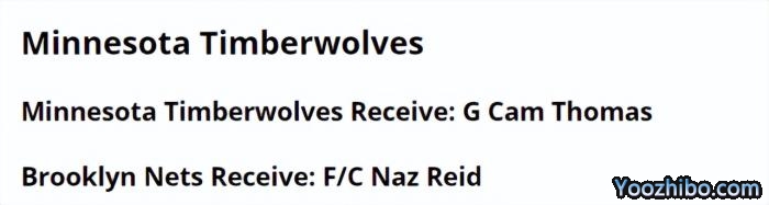 方案2:篮网送出卡姆-托马斯,得到森林狼的纳兹-里德