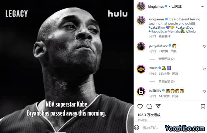 湖人官方祝贺科比生快!詹皇欧文布克发声祝贺 瓦妮莎:我太想念你