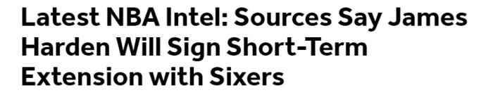 据BR记者Jake Fischer报道,无论如何,预计哈登都会选择执行下赛季价值4736万美元的球员选项;76人老板拒绝给哈登4年顶薪或者5年顶薪,哈登执行球员选项后将和76人续签2年约1亿美元的短约,要是等到8月10后签约,哈登2年合同能多拿1500万美元。