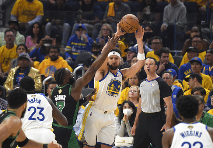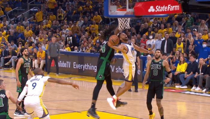 勇士全队第一节投进2记三分,克莱和小佩顿各自投进一记三分,凯尔特人外线5中0。