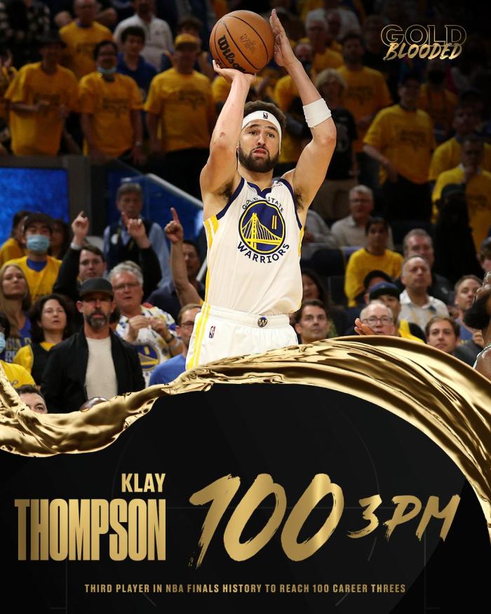 汤普森总决赛三分命中数正式达成100记大关,成为库里和詹姆斯之后第三位总决赛至少命中100记三分的球员;汤普森和库里季后赛三分命中总数突破1000记大关,水花兄弟创历史第一且唯一纪录,比黄蜂森林狼鹈鹕国王奇才灰熊尼克斯76人篮网9支球队季后赛三分命中数还多,这纪录太疯狂。