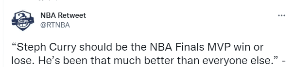 美媒TA记者John Hollinger也是同样的观点——无论输赢,库里都应该夺得FMVP!
